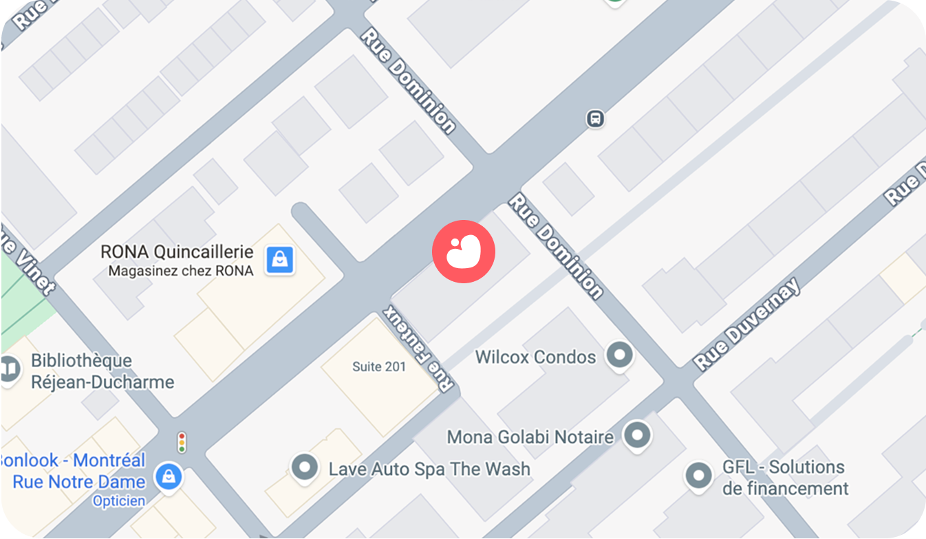 Tournez à gauche et marchez environ 7 minutes jusqu’au 2330 Notre-Dame Ouest (près de l’intersection avec la rue Vinet).